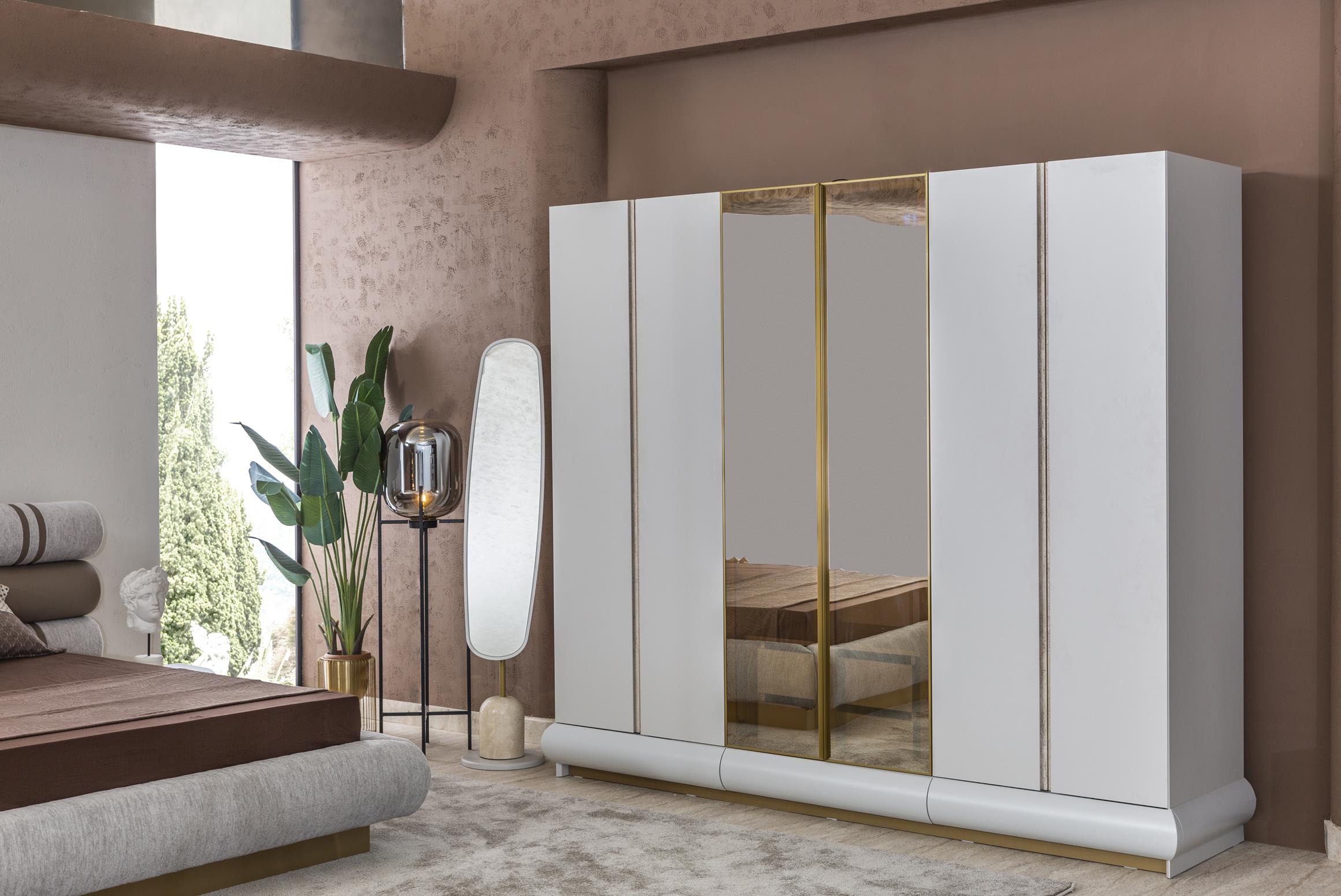 Ürün Bilgisi -Ürün içeriğinde; 6 Kapılı Dolap, Karyola, Aynalı Şifonyer ve 2 adet Komodin bulunmaktadır. -Görseldeki yatak ve aksesuarlar fiyata dahil değildir. -Ürün 24 ay üretici firma garantisi altındadır. -Ürünler, kaliteli malzemelerden oluşmakta ve kontrollü üretim süreçlerinden geçerek sizlere ulaşmaktadır. -Kapaklarda yavaşlatıcı menteşeler kullanılmış olup, hem kapak ömrü uzatılmış hem de hızlı çarpmaların önüne geçilmiştir. -Tüm boyutlar yaklaşıktır. Renk yalnızca rehberlik amaçlıdır, çekimlerden kaynaklanan renk tonu farklılıkları olabilir.